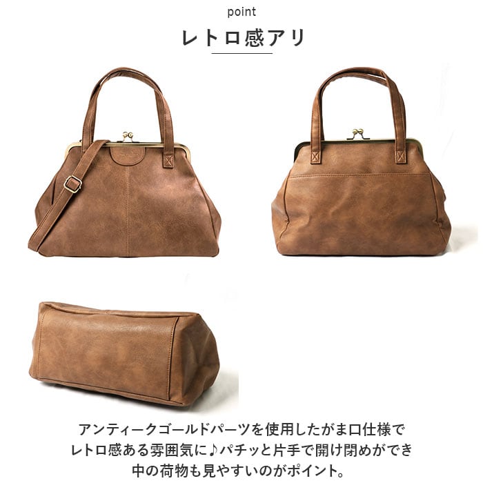 LIZDAYS リズデイズ トートバッグ がま口 ショルダー 通販 トートバック トート ショルダーバッグ ショルダーバック 手提げ 斜めがけ 肩かけ がまぐち 2WAY 大きめ レディース PUレザー レトロ かわいい おでかけ お出掛け お出かけ