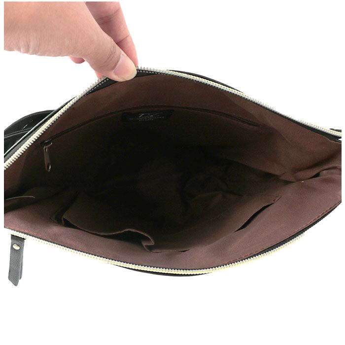 ・内側にコインケースやカギなどの小さな小物を収納できる、オープンポケットとファスナーポケット付き。