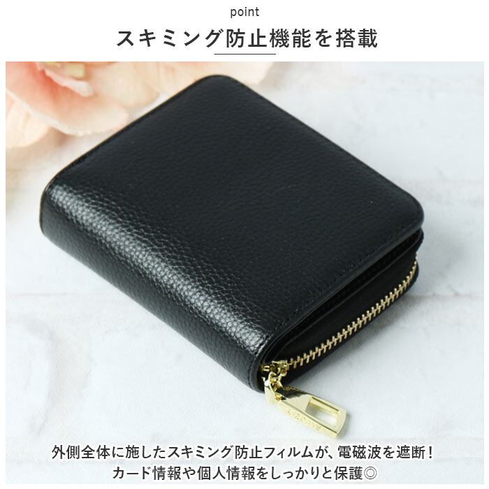 ・外側全体に施したスキミング防止フィルムが、電磁波を遮断!カード情報や個人情報をしっかりと保護◎