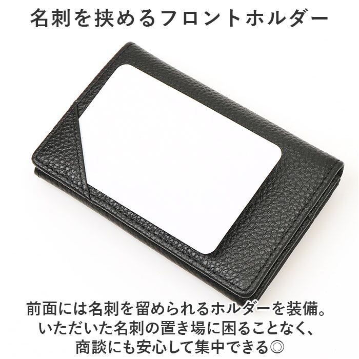 ・前面には名刺を留められるホルダーを装備。いただいた名刺の置き場に困ることなく、商談にも安心して集中できる◎