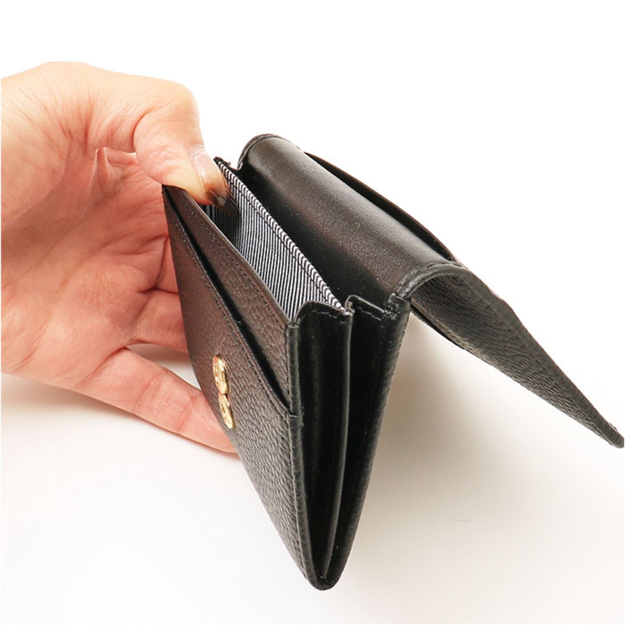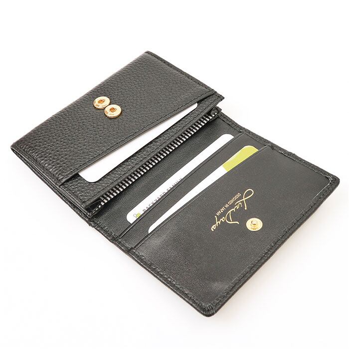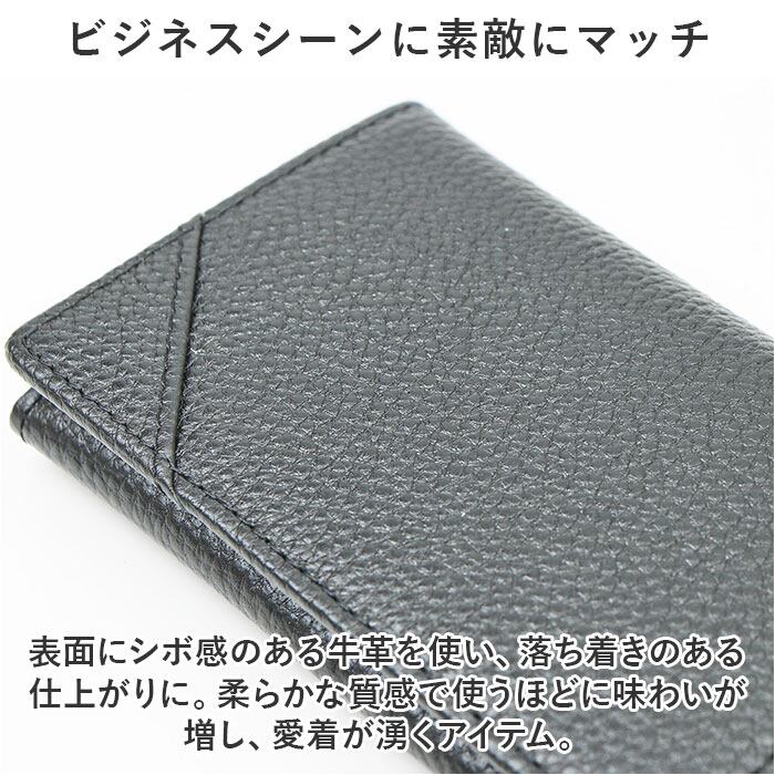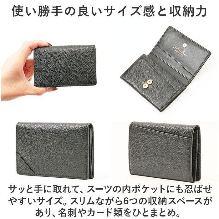 ・サッと手に取れて、スーツの内ポケットにも忍ばせやすいサイズ。スリムながら6つの収納スペースがあり、名刺やカード類をひとまとめ。
