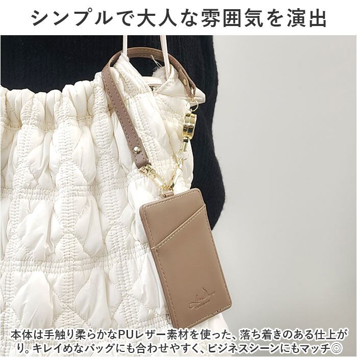 ・本体は手触り柔らかなPUレザー素材を使った、落ち着きのある仕上がり。キレイめなバッグにも合わせやすく、ビジネスシーンにもマッチ◎
