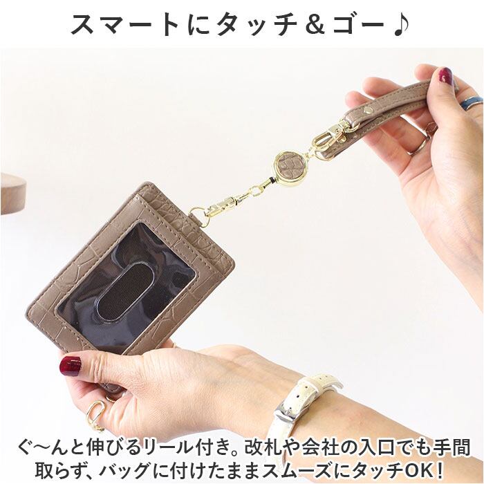 ・ぐ~んと伸びるリール付き。改札や会社の入口でも手間取らず、バッグに付けたままスムーズにタッチOK!