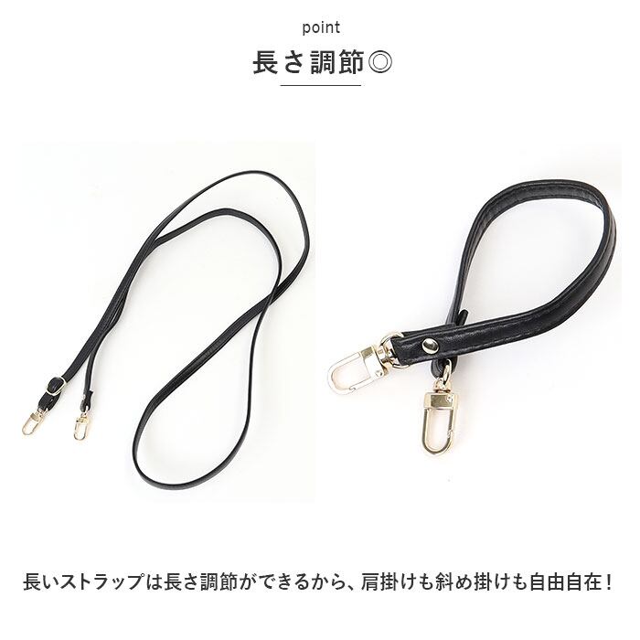 ・長いストラップは長さ調節ができるから、肩掛けも斜め掛けも自由自在!