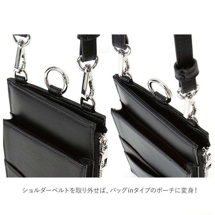・ショルダーベルトを取り外せば、バッグinタイプのポーチに変身!ポシェットトップのリングでバッグのハンドルに取り付けてもOK!