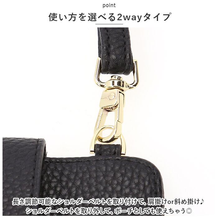 ・長さ調節可能なショルダーベルトを取り付けて、肩掛けor斜め掛け♪ショルダーベルトを取り外して、ポーチとしても使えちゃう◎