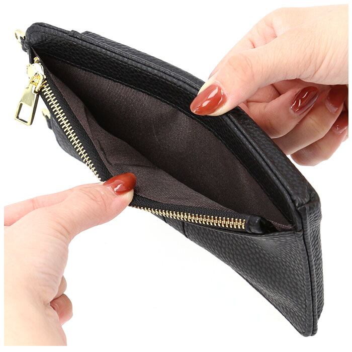 ・小銭入れにぴったりなファスナーポケットや、お札やレシートが収まるフリーポケット。取り出しやすいカードポケットを装備。